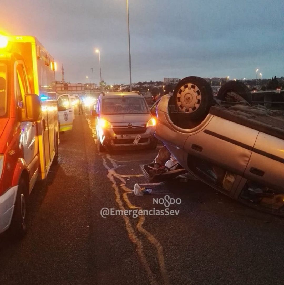 Al Menos Un Herido En Un Accidente Multiple Con Vuelco En El Tramo Del Aeropuerto De Sevilla De La A 4