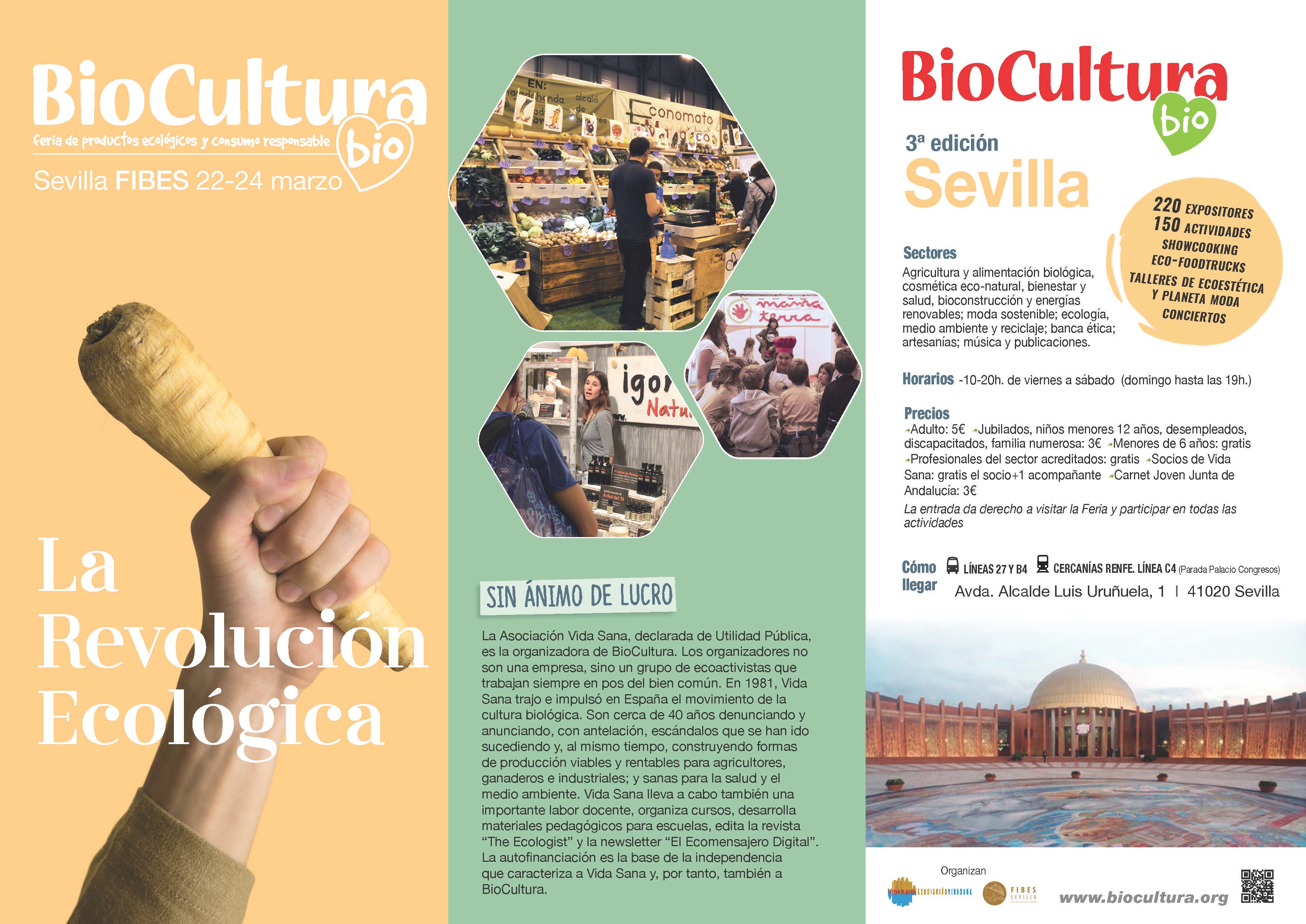 BioCultura Sevilla 2020 Del 21 al 23 marzo 2020 FIBES - Palacio de Exposiciones y Congresos de Sevilla Av. La feria ms importante y representativa de la cultura medioambiental y las. BioCultura la Feria de Productos Ecolgicos y Consumo Responsable es un encuentro de carcter internacional que se sita entre los dos ms importantes de estas caractersticas que se celebran en Europa.