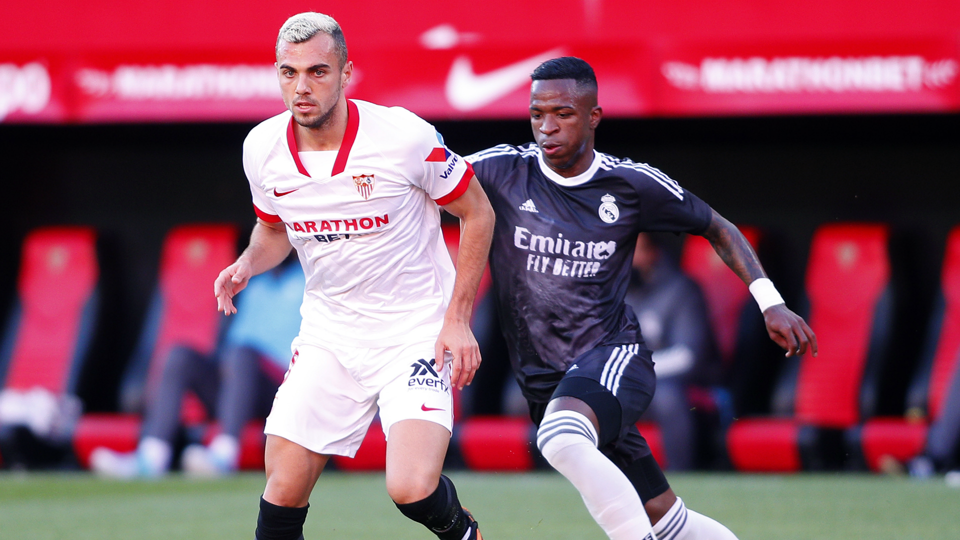 90 Final segunda parte Real Madrid 2 Sevilla 2. Smate a la mejor visibilidad y comunicacin del ftbol femenino con sus fans. Un gol en propia puerta de Bono tras accin de Vincius Jr le da el triunfo al Real Madrid en su visita al Ramn Snchez-Pizjun.